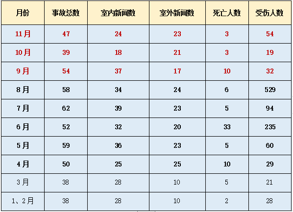 2020年11月份全国燃气爆炸事故数据分析报告