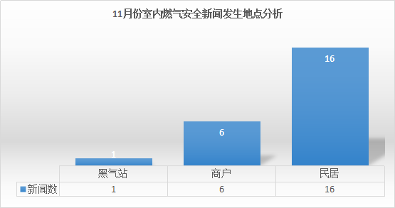 本月搜集新闻发生地点主要集中在民居,共16起,其余事故发生地点为餐饮商户6起,黑气站1起。